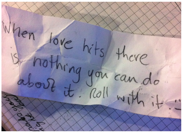 The reactions of people reading the secrets and wanting more was fantastic. Some people chose to share the secrets they got with others but many reacted and then kept them. Several days after the event was finished I went back to read the secrets written on the paper. Reading them in time on the paper was more powerful than reading on the slip of thermal paper that was printed.