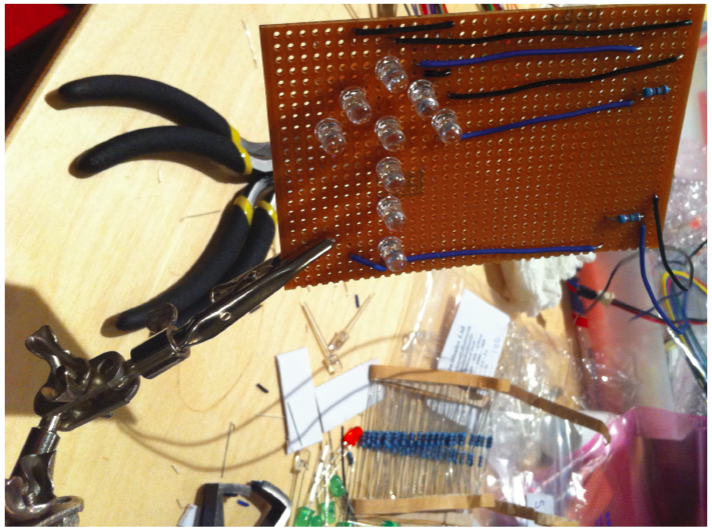 The construction of this project was done in several stages. There were periods of design and evolution that was done during a code-testing phase. I worked iteratively, testing the code one by one. Then getting the code to work together. For example, I hooked up the button and ran the simple code to ensure the button was working. Once the button was error free I integrated it with the more complex code. Testing as I went.
