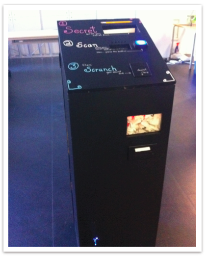 When the box was presented it was interesting to observe people using it. The instructions were clear for some but for others, they seemed to want to use it to get to the end result as fast as possible. Meaning they skimmed the instructions, which I thought had been minimal anyway, and so usually at the scanning (step 2) a few people were so excited to get the secret out of the box that they forgot to remove their secret from it to scrunch it up and deposit it.
