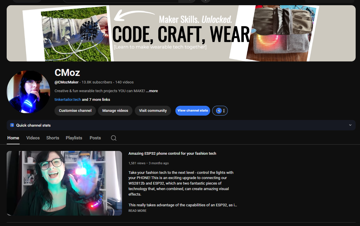 At CMozMaker, we talk with you to select the hardware used for our projects to ensure the best fit for the concept and audience. The CMozMaker YouTube channel features engaging tutorials, creative builds, and wearable or fashion technology projects that viewers can easily recreate.